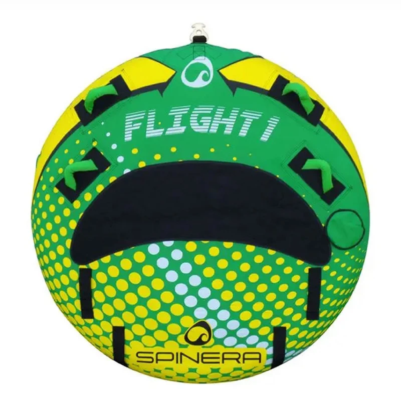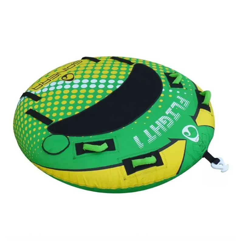 La bouée comporte de nombreuses poignées et une protection en néoprène pour les coudes et les genoux. Allongé sur le ventre, vous pouvez être catapulté sur la vague arrière du bateau. La bouée est entièrement recouverte de nylon