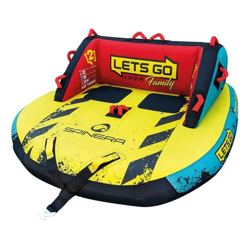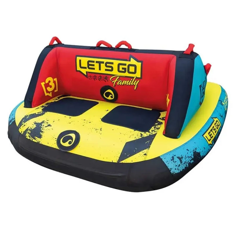 La bouée peut être tirée dans les deux sens. Soit assis comme un canapé ou à genoux pour plus d’action. Haut dossier pour plus de protection pour des enfants. La bouée est entièrement recouverte de nylon et comporte de nombreuses poignées.