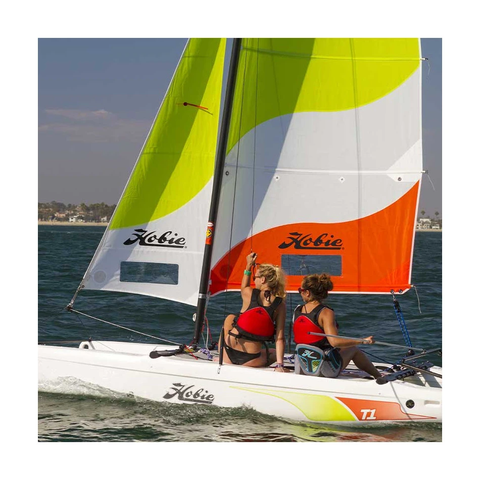 Ses volumes de coques, ses lignes tendus, font du HOBIE T1 un catamaran facile et performant.Ses qualités de navigation, sa robustesse, sa fiabilité ont déjà convaincu beaucoup d’écoles de voile. Les particuliers trouveront dans le T1, un catamaran vivant utilisable par toute la famille.