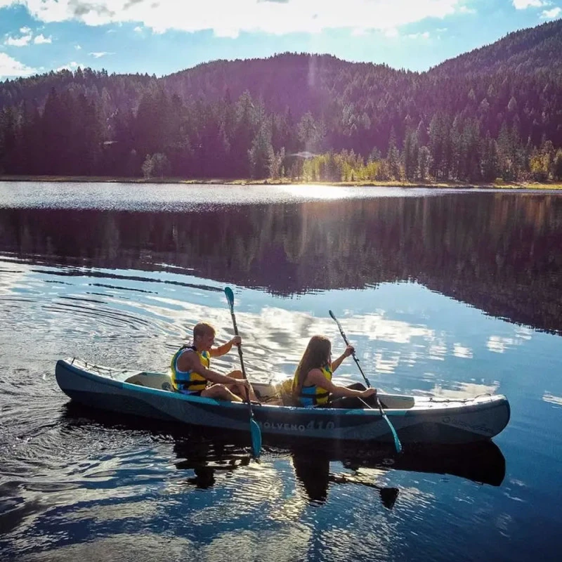 Le Canoë kayak profilé MOLVENO est un kayak gonflable révolutionnaire avec la technologie Drop Stitch, la même que sur un Paddle, ce qui assure une rigidité encore jamais vu sur un canoë kayak gonflable.