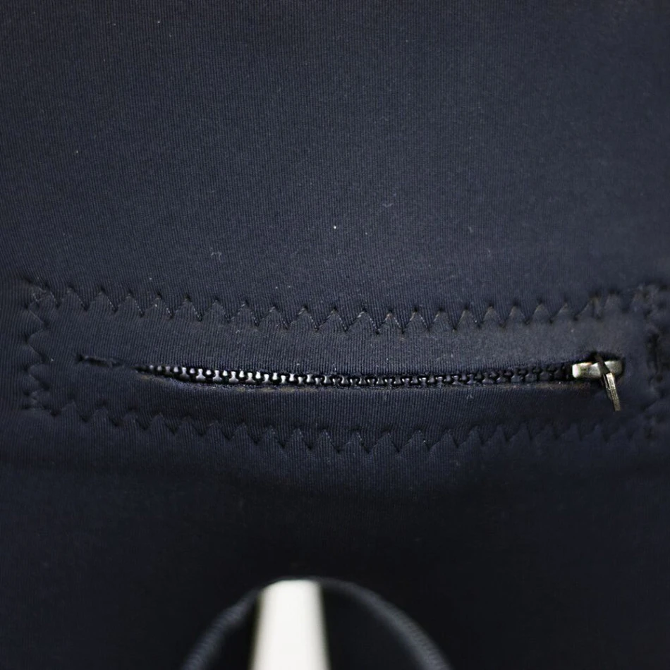 Des renforts sont placĂ©s aux genoux et sur l’assise. La combinaison est Ă©quipĂ© d’une braguette pour les envies pressante.