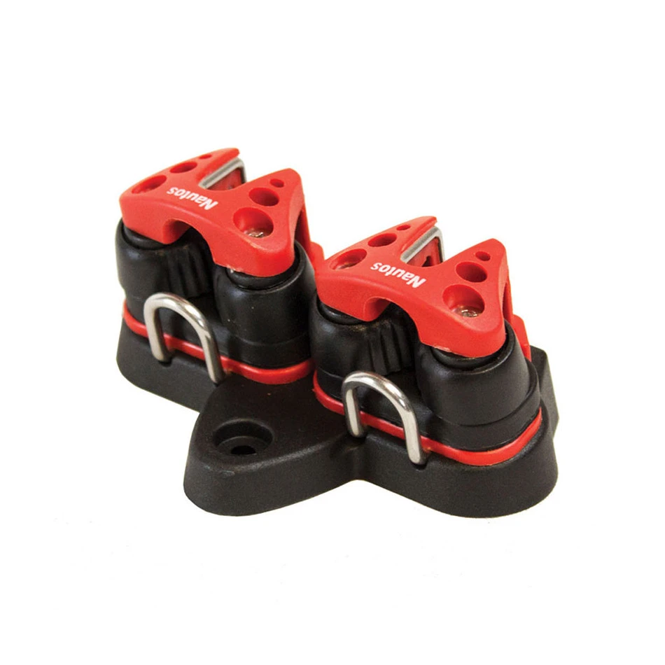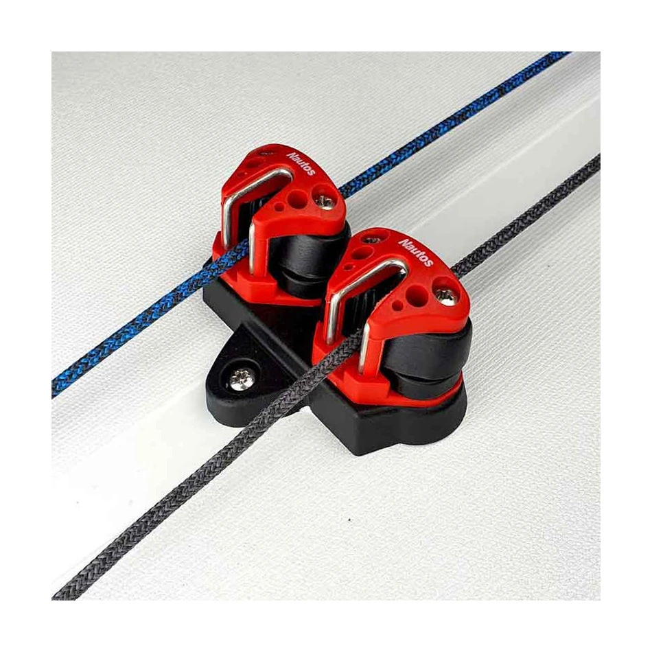 Platine de pont avec taquets à machoires plastique. Platine compatible pour dériveur Laser ILCA, idéal pour une navigation en loisirs et écoles de voile. cette platine sert aux réglages de la bordure et du cunningham.
