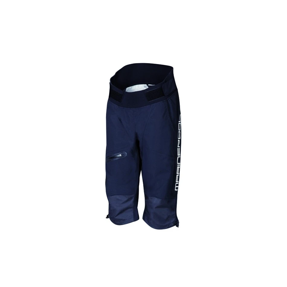 Bermuda technique ultra léger 2,5 couches, coutures entièrement soudées, étanche et respirant, DWR, genoux préformés, taille élastique pour un meilleur ajustement, protection néoprène à la taille, poche de jambe avec zip déperlant, renforts au fessier et aux genoux, taille ajustable avec bande élastique