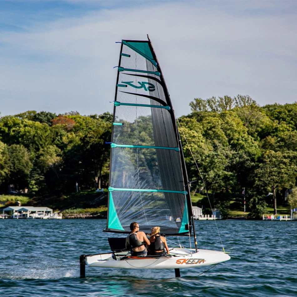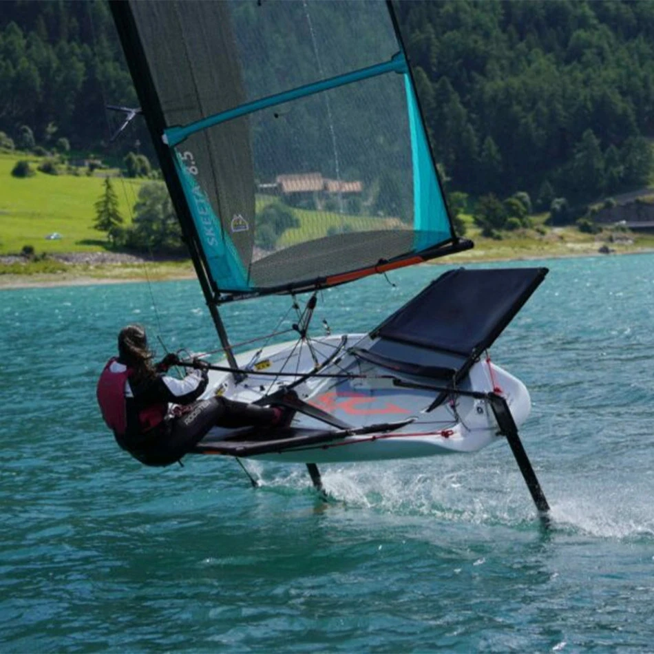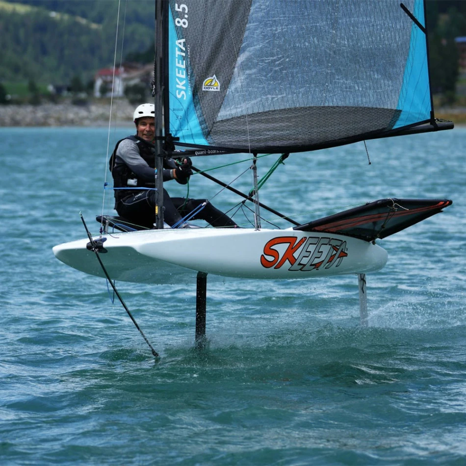 Le Skeeta 8.5 m² est un dériveur à foil Hight Tech performant et facile d’accès. Le principal intérêt du Skeeta réside dans sa forme de carène lui permettant de naviguer comme n’importe quel autre dériveur tant qu’il n’est pas en vol. Cela permettra aux débutants d’avoir une grande stabilité pour appréhender le vol.