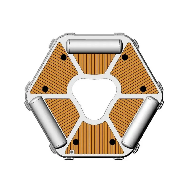 La nouvelle plateforme hexagonale Yachtbeach Relax Zone 2.50M a été créée pour se détendre au bord de la mer en toute tranquillité et profiter de merveilleuses journées de piscine derrière votre yacht. Le filet vous protège, vous et vos amis, des méduses et autres créatures marines. La surface antidérapante est facile à entretenir et à nettoyer. Avec des porte-boissons pour 6 personnes et 3 tubes de dossier, vous pouvez vraiment passer du temps avec vos amis et votre famille.
